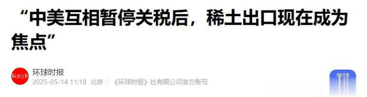 环球时报——“中美互相暂停关税后,稀土出口现在成为焦点”