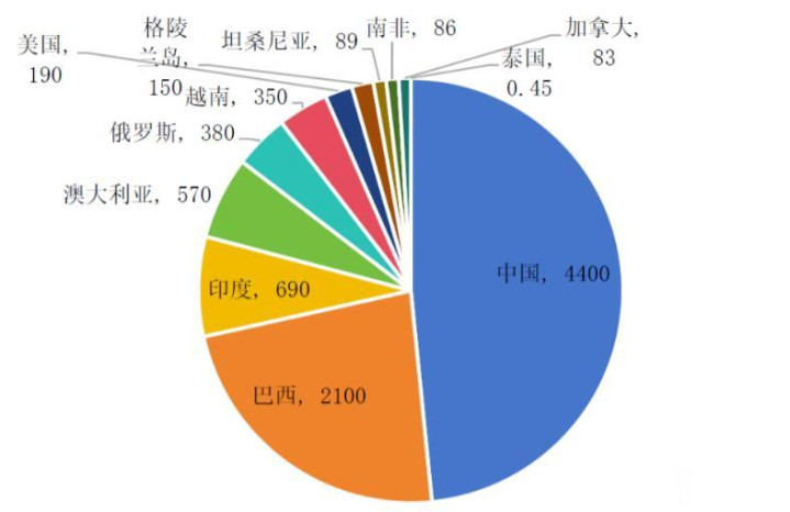 美国的稀土存量为190万吨,在全球稀土格局中并不占据优势。